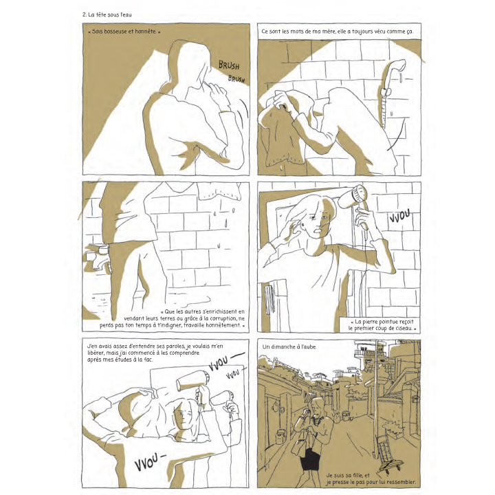 C’est gris jusqu’à l’écoeurement parfois, d’ailleurs les planches en trois couleurs viennent encore accentuer ce mal-être, une sobriété contenue qui se défoule dans les détails toujours pertinents.